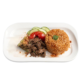Riz blanc, boeuf avec sauce arachide.