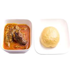 Foutou banane, viande avec sauce graine.